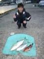 台風18号の余波入ってきました。沖一文字は4時45分出船、神谷一文字、磯の出船時間は電話確認下さい。10月1日より沖一文字への出船時間が5時45分に変更します。飲ませ釣り用小アジ1匹100円です。10月11、12日は秋祭りの為休船させていただきます。 |