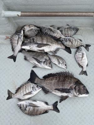 チヌ | 20〜28cm | 54匹 | 竿1,6ハリス1,7号チヌ針3号 | オキアミ、シラサ |