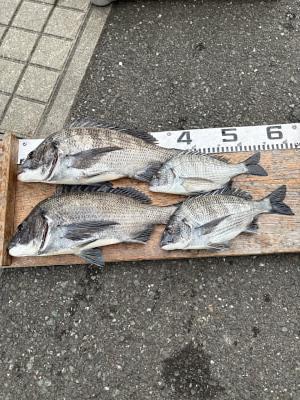 チヌ | 26〜43cm | 4匹 | 竿1,5mハリス2号チヌ針4号 | シラサ、オキアミ |