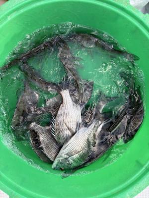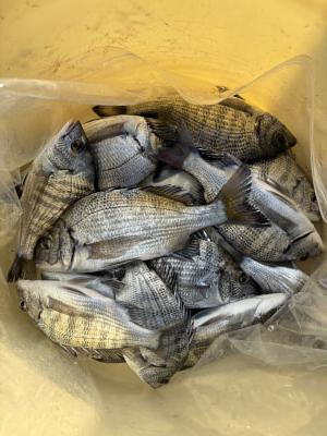 チヌ | 21〜26cm | 14匹 | 竿1,5mハリス | シラサ、オキアミ |