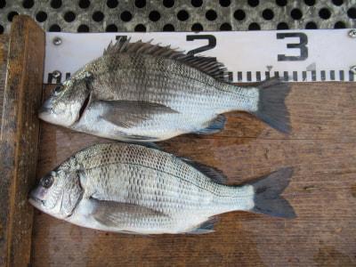 チヌ | 27〜28cm | 2匹 | 竿1,6mハリス1,7号チヌ針3号 | シラサエビ |
