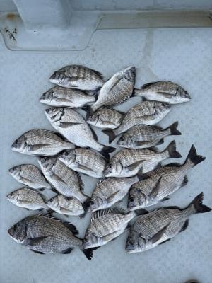 チヌ | 20〜35cm | 20匹 | 竿1,6mハリス2号チヌ針5号 | 丸貝、サナギ |