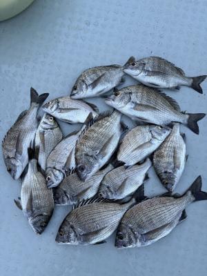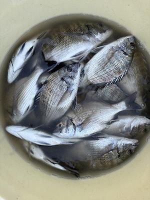 チヌ | 20〜26cm | 15匹 | 竿1,6mハリス1,5号チヌ針3号 | シラサエビ |