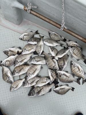 チヌ | 20〜30cm | 23匹 | 竿1,5mハリス1,75号チヌ針3号 | オキアミ、シラサ、サナギ |