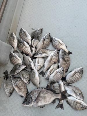 チヌ | 20〜34cm | 25匹 | 竿1,5mハリス1,5号チヌ針3号 | 生ミック、サナギ、オキアミ |