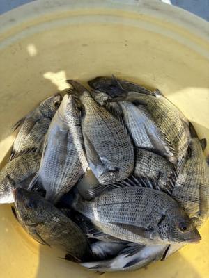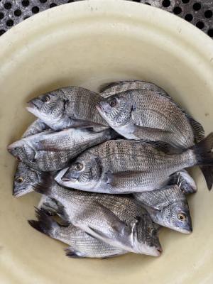 チヌ | 19〜28cm | 69匹 | 竿1,35mハリス1,0号チヌ針3号 | サナギ、シラサ、オキアミ、コーン |