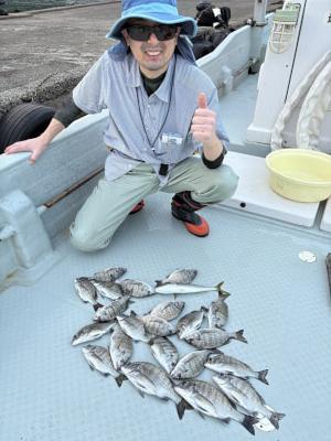 チヌ | 20〜26cm | 21匹 | 竿1,5mハリス1,5号チヌ針3号 | サナギ、オキアミ、コーン |