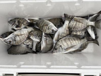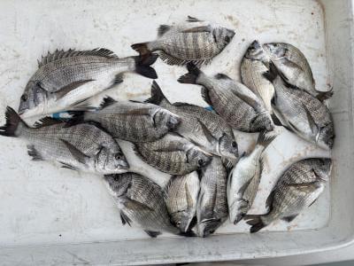 チヌ | 20〜28cm | 15匹 | 竿1,4mハリス1,5号チヌ針2号 | 半貝、サナギ |