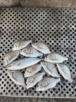 チヌ | 21〜25cm | 11匹 | 竿1,35mハリス1,0号チヌ針3号 | シラサ、オキアミ、コーン、 |