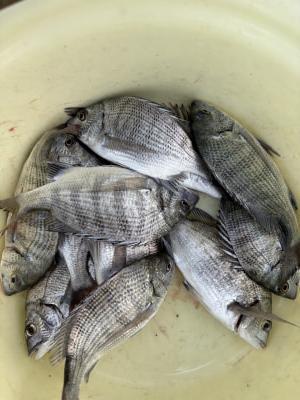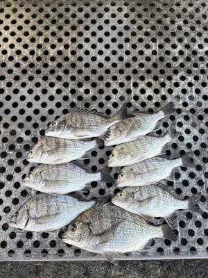 チヌ | 21〜28cm | 9匹 | 竿1,5mハリス1,5号チヌ針3号 | オキアミ、ネリ餌 |