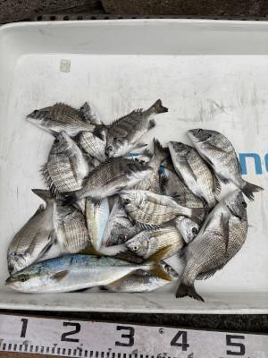 チヌ | 20〜30cm | 16匹 | 竿1,6mハリス2号チヌ針2号 | シラサ、オキアミ |