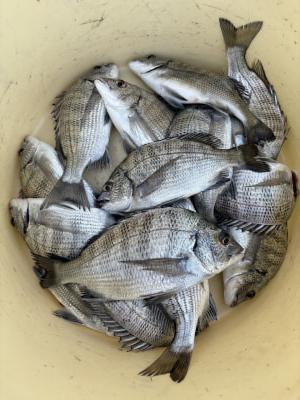 チヌ | 20〜26cm | 14匹 | 竿1,5mハリス1,7号チヌ針3号 | シラサ、オキアミ |
