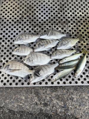 チヌ | 20〜29cm | 45匹 | 竿1,5mハリス1,2号チヌ針3号 | コーン、オキアミ、サナギ |