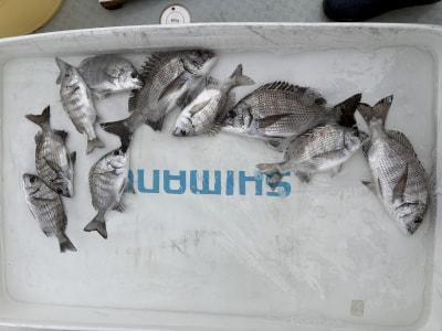 チヌ | 20〜30cm | 10匹 | 竿1,5mハリス1,5号チヌ針3号 | オキアミ、コーン |