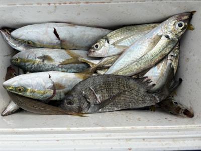 マアジ | 20〜28cm | 68匹 | 竿2,7mハリス2号サビキ9号 | アミエビ、オキアミ |