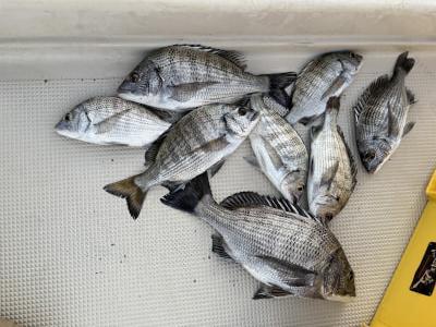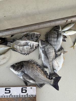 チヌ | 25〜33cm | 6匹 | 竿1,4mハリス1,35号チヌ針3号 | オキアミ、シラサ |