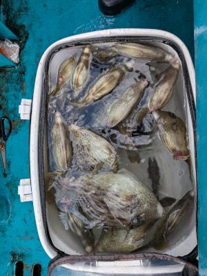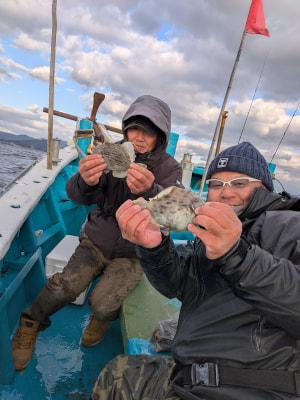 | カワハギ釣りに出船しました! 朝から波高く風も強い最悪のコンディションでしたが皆さん頑張ってたくさん釣ってもらえました! |
