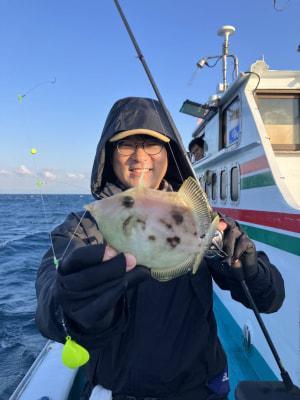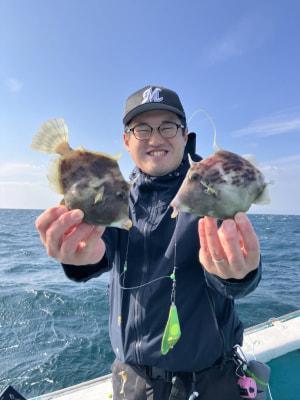 | カワハギ釣りに出船しました! 波あり風ありの中でしたがアタリがボチボチとあり後半はラッシュの時間もありたくさん釣れました! |