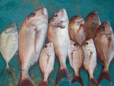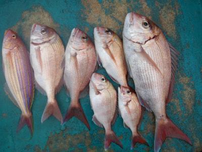 マダイ | 28〜58cm | 8匹 | 竿釣り | オキアミ |