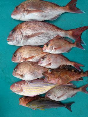 マダイ | 28〜55cm | 7匹 | 竿釣り | オキアミ |