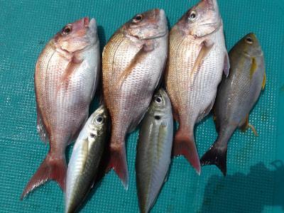 マダイ | 35〜40cm | 3匹 | 竿釣り | オキアミ |