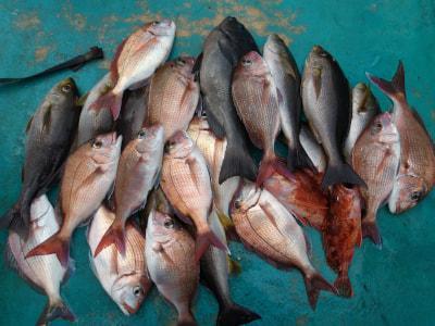 マダイ | 27〜37cm | 8匹 | 竿釣り | オキアミ |