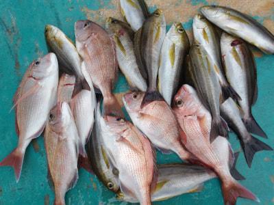 マダイ | 28〜40cm | 8匹 | 竿釣り | オキアミ |