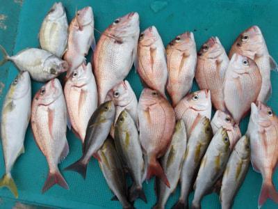 マダイとチダイ | 28〜43cm | 14匹 | 竿釣り | オキアミ |