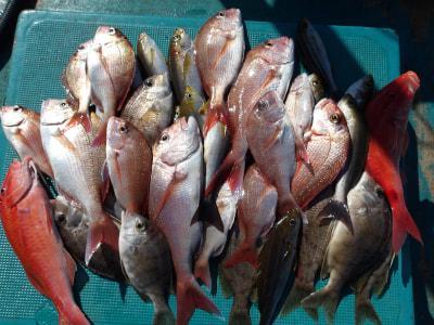 マダイ | 25〜46cm | 12匹 | 竿釣り | オキアミ |