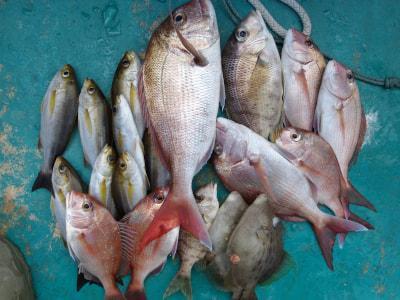 マダイ | 28〜48cm | 8匹 | 竿釣り | オキアミ |