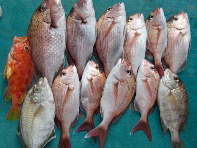 マダイ | 30〜45cm | 10匹 | 竿釣り | オキアミ |