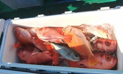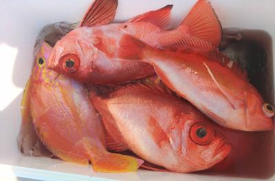 チカメキントキ | 32〜36cm | 18匹 | 天秤ズボ ハリス6〜8号 2本〜3本針 | オキアミ |