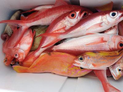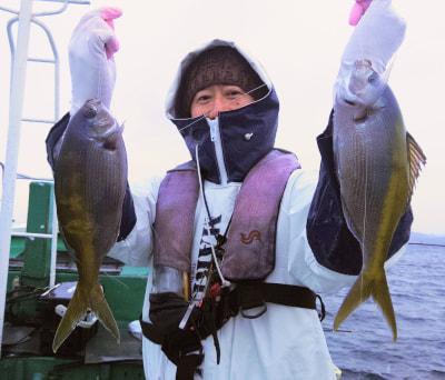 | 希望により前半 今の時期には無謀なウメイロ狙い 5人で4匹です 予想通りでした また 春先から初夏にかけて挑戦してください 後半は深場の五目釣りでした お疲れ様です 明日は 強風予報の為 休船します |