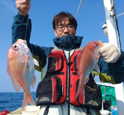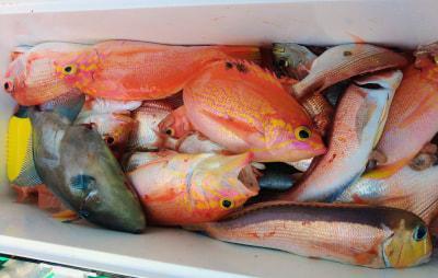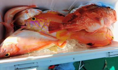 | 岸本さんグループによる浅場〜深場でのオキアミ五目釣りでした 浅場は魚影は良いですが全く喰い気が無しでした お疲れさまでした |