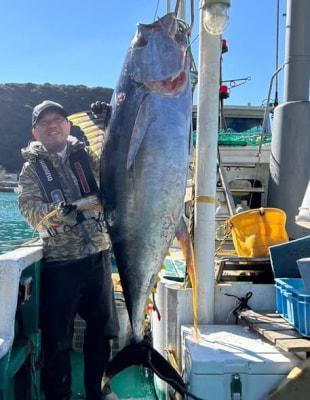 | 潮岬でのキハダフカセ狙い 3日のトンネル脱出できました 大川さん 今シーズン初挑戦でしたが 見事60kgゲットしてくれました おめでとうございます 久しぶりに釣れたのでもう少し大きく見えましたです |