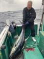 | 1日休んでの潮岬でキハダフカセ狙い 59.4kg 41kgと2本釣れました あとはオナガザメ ヨシキリザメ クロヘリメジロザメとサメの種類が増えてきました |