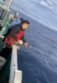 | 今日も潮岬でのキハダフカセ狙い 昨日のサメの入れ食いと違い キハダのアタリは3回でした 松山さん 今シーズン初挑戦でいきなり49kgゲット 畑中さん 今シーズン3本目の40,4kgと2本釣れました 途中 小型のシイラの入れ食いがありました |