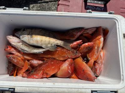 | 2名様のご乗船で小アジde根魚に出船、アカハタは順調に釣れましたがオオモンハタ2匹、ヒメダイ0匹でした。本日もご乗船いただきありがとうございました🙇 |