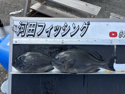 | 今日は久しぶりにグレポイントのご乗船、潮が澄み底まで見える厳しい状況でしたが33センチ、41センチが釣れました^_^ |