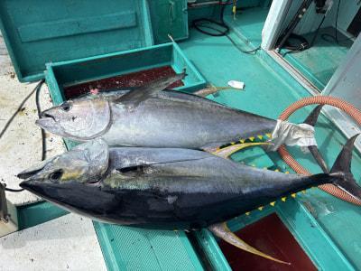 キハダマグロ | 42〜43Kg | 2匹 | 完全フカセ | 冷凍イワシ |