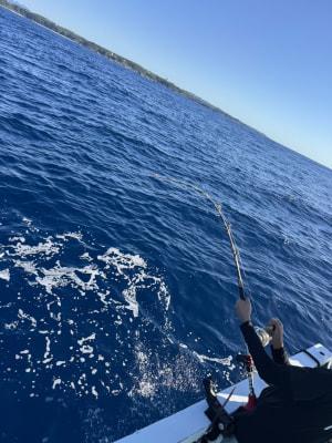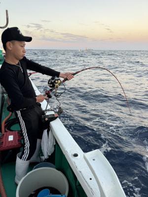 | 今日もキハダフカセに出船、周りではボチボチ釣れていましたが自船はキハダ?らしきバラシ一回とサメのアタリが6回で撃沈でした😭 本日もご乗船いただきありがとうございました🙇 |