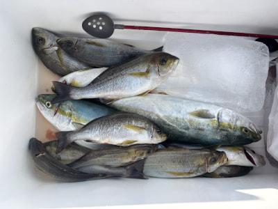 35mポイント、マダイ、ハマチ、シオ、イトヨリ、アジなどを釣りました👍 吉田様グループ |