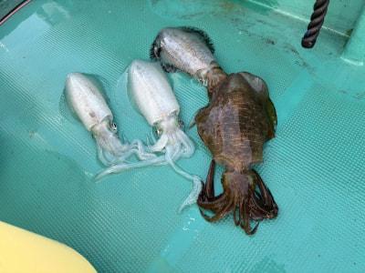 | 約1時間半程でしたがアオリイカ調査に行き400〜600グラムまでが5ハイ釣れました^_^ 短時間なのではっきりした釣果は分かりませんが良い感じかも?午後からのショート便でよければ2名様からエギングご予約承りますので宜しくお願いします🙇 |