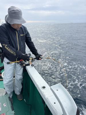 | キハダフカセに出船、キハダのヒット2回でサメに尻尾をかじられましたが43キロが1匹釣れました😊 本日もご乗船いただきありがとうございました🙇 週末は満員ですが明日から金曜日まで空き多数ありますので宜しくお願いします🤲 |
