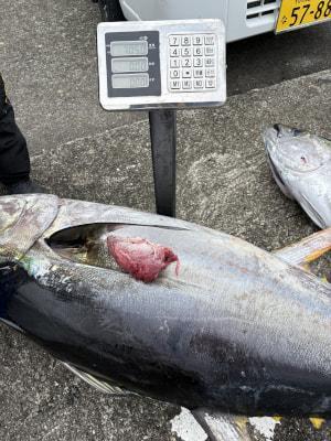 | キハダフカセに出船、キハダのヒット5回でサメにかじられて70.5キロ、44キロ、35キロ、29キロが釣れ1回はハリス切れでした。本日もご乗船いただきありがとうございました🙇 |