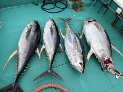キハダマグロ | 29〜70.5Kg | 4匹 | 完全フカセ | 冷凍イワシ |