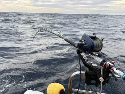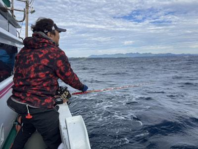 | キハダフカセに出船、キハダのヒットが4回で43キロ、45キロが釣れました😊 あと少しのところでサメに追いかけられてのバラシが2回でした。本日もご乗船いただきありがとうございました🙇 |