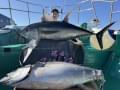 | 2日ぶりの出船で2隻でキハダフカセ、第八の釣果です。3ヒットでサメ1回、ビンチョウ25.7キロ、20.3キロが釣れました^_^ 本日もご乗船いただきありがとうございました🙇 |