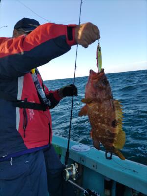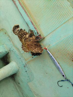 最後の最後になんと危)オニオコゼ!こちらが焦りました! しっかり口にヒットしています! |