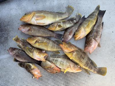 | 船外機釣果、真鯛、シオ、ブリ、アオハタ、オオモンハタなどが釣れてました。 |